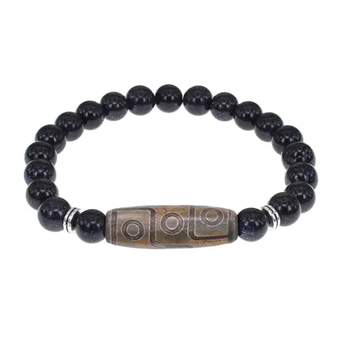 Браслет с 9-глазой бусиной Дзи и синт.камнем Синий авантюрин BSDS8-23-02