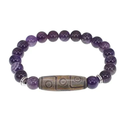 Браслет с 9-глазой бусиной Дзи и нат.камнем Аметист BSDS8-23-03