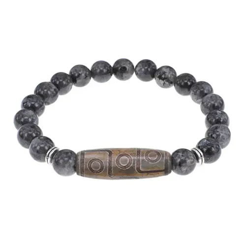 Браслет с 9-глазой бусиной Дзи и нат.камнем Лабрадор BSDS8-23-08