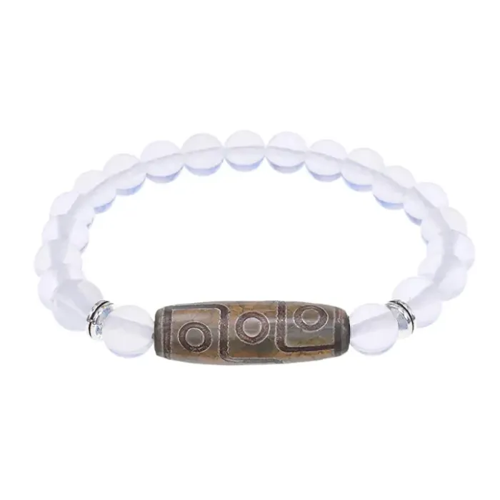 Браслет с 9-глазой бусиной Дзи и синт.камнем Лунный камень BSDS8-23-11