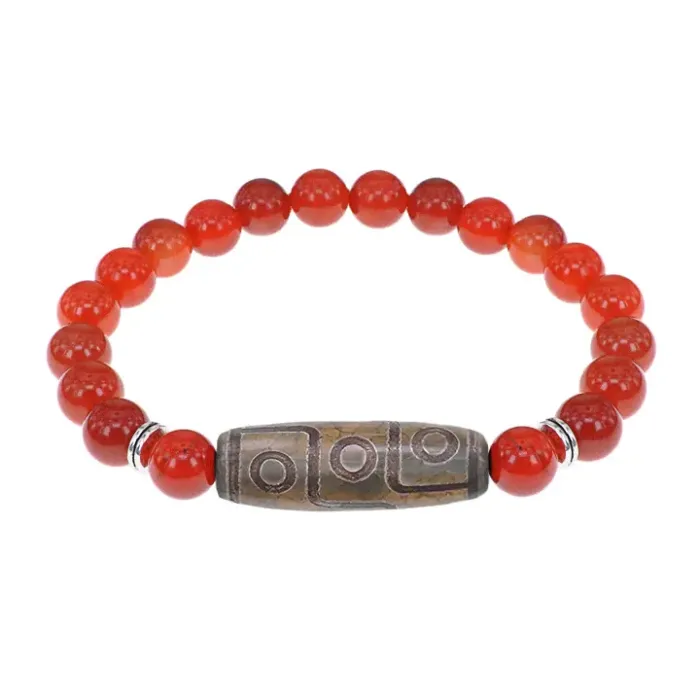 Браслет с 9-глазой бусиной Дзи и нат.камнем Сердолик BSDS8-23-17
