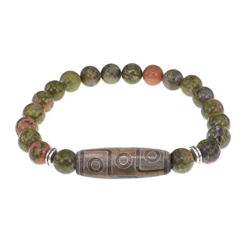 Браслет с 9-глазой бусиной Дзи и нат.камнем Унакит BSDS8-23-20