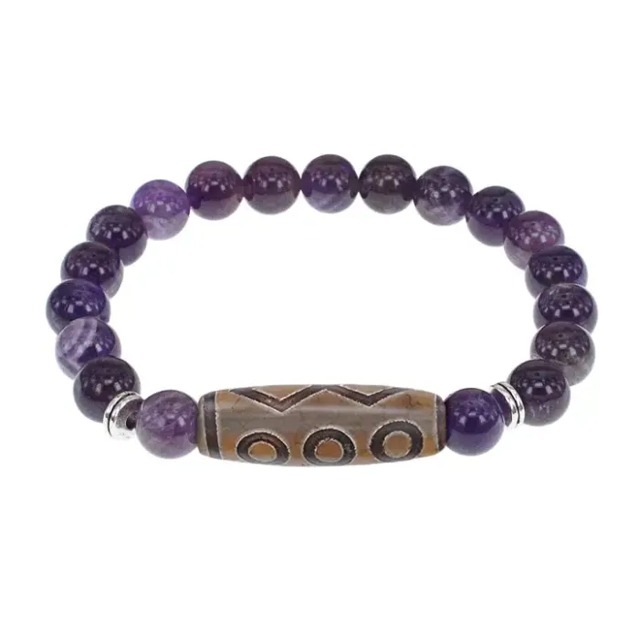 Браслет с 6-глазой бусиной Дзи и нат.камнем Аметист BSDS8-24-03