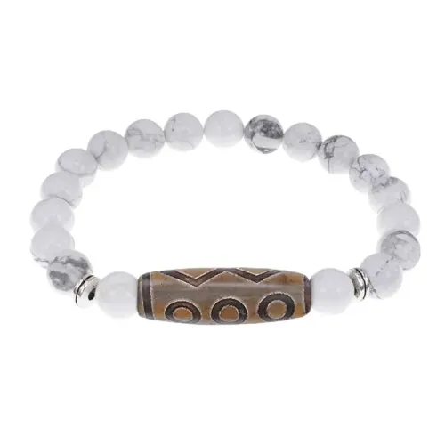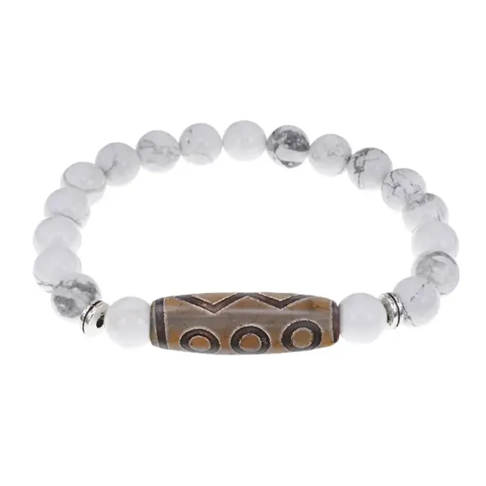 Стрейч-браслет из натурального камня с тибетской бусиной Дзи из агата.