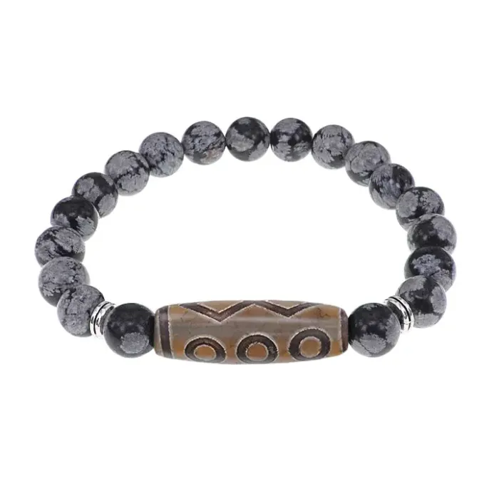 Браслет с 6-глазой бусиной Дзи и нат.камнем Снежный обсидиан BSDS8-24-14