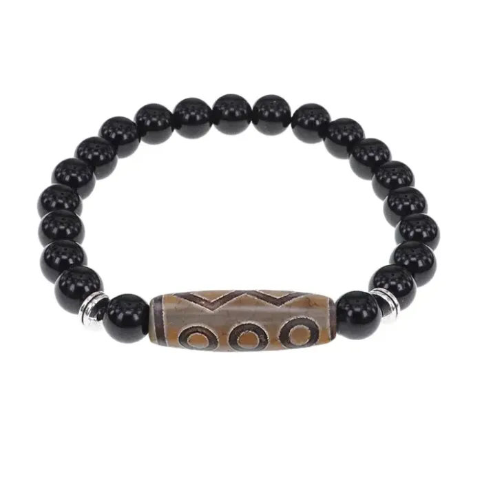 Браслет с 6-глазой бусиной Дзи и нат.камнем Черный агат BSDS8-24-23