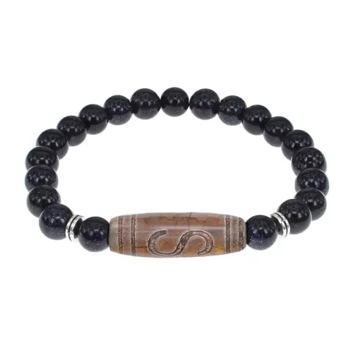 Стрейч-браслет с тибетской бусиной Дзи и синтетическим камнем.