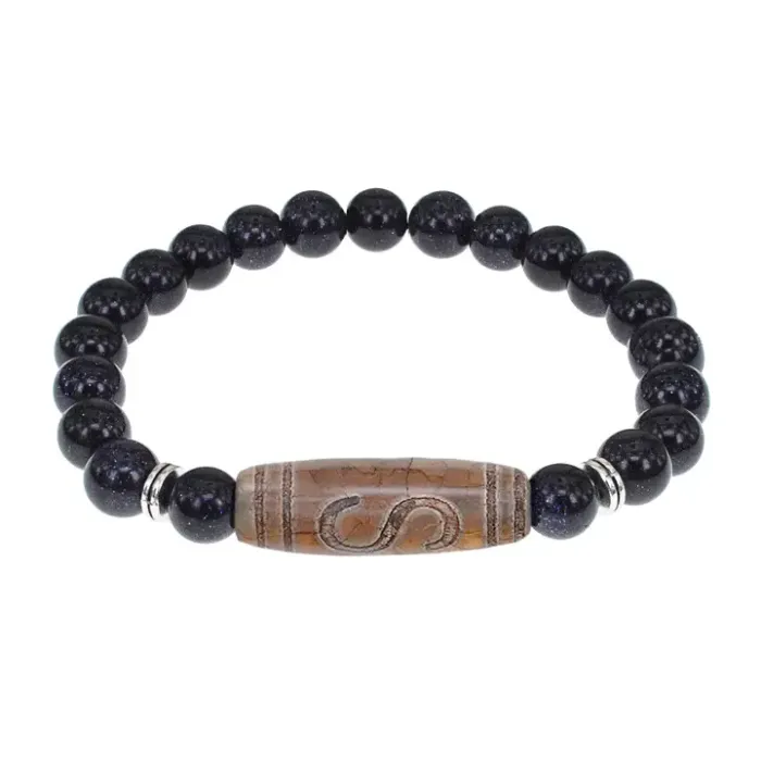 Браслет с Бусиной Дзи Денежный крючок и синт.камнем Синий авантюрин BSDS8-25-02