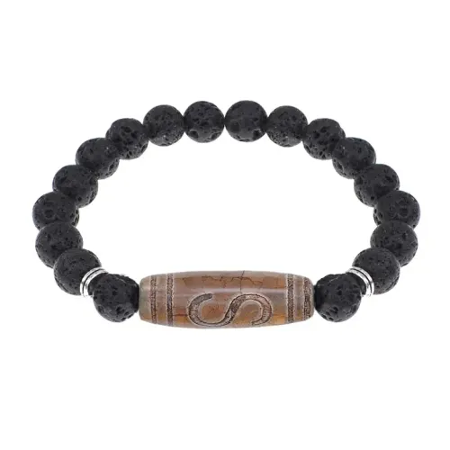Браслет с Бусиной Дзи Денежный крючок и нат.камнем Лава BSDS8-25-09
