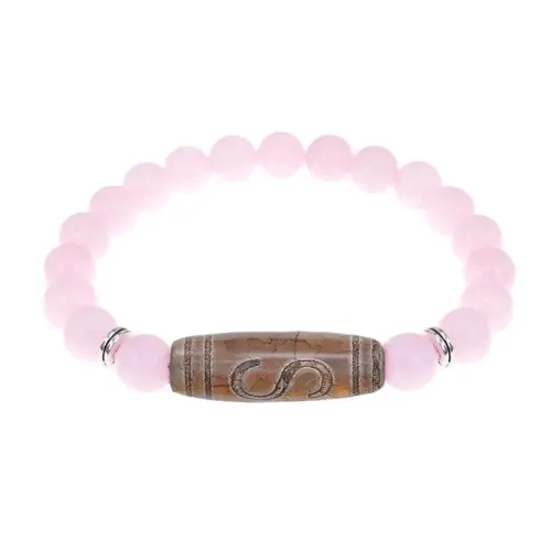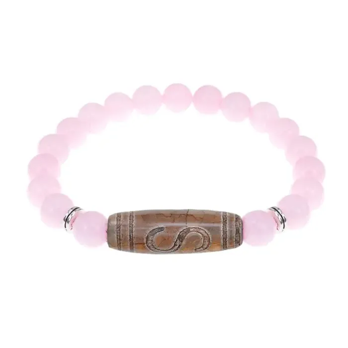 Браслет с бусиной Дзи Денежный крючок и нат.камнем Розовый кварц BSDS8-25-15