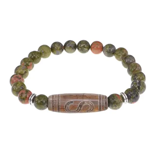 Браслет с бусиной Дзи Денежный крючок и нат.камнем Унакит BSDS8-25-20