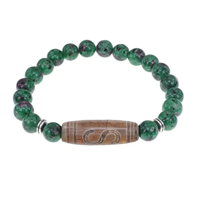 Стрейч-браслет из синтетического камня с тибетской бусиной Дзи из агата.