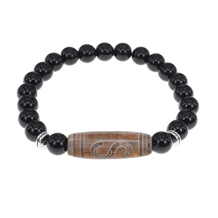 Стрейч-браслет из натурального черного агата с тибетской бусиной Дзи «Денежный крючок».