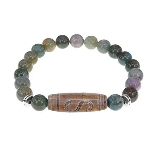 Стрейч-браслет из натурального камня с тибетской бусиной Дзи.