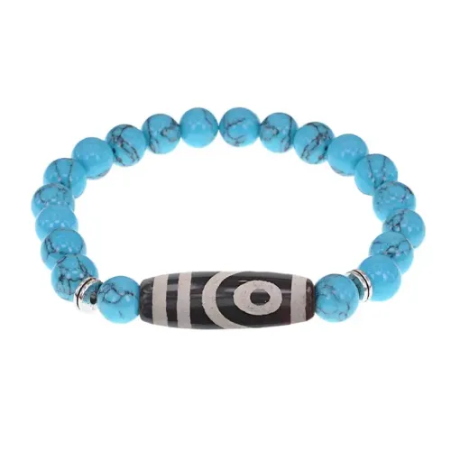 Браслет с 2-глазой бусиной Дзи и синт.камнем Бирюза BSDS8-26-05