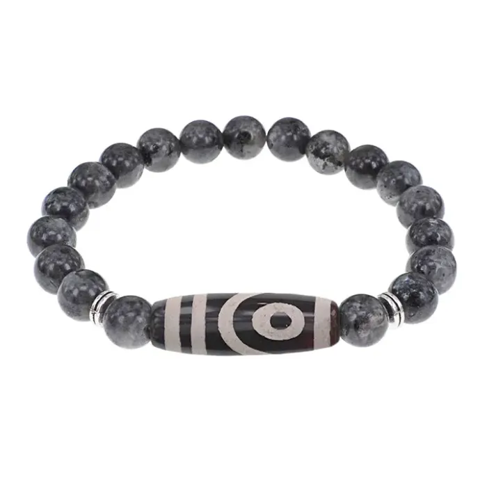 Стрейч-браслет из натурального камня лабрадор с тибетской бусиной Дзи из агата.