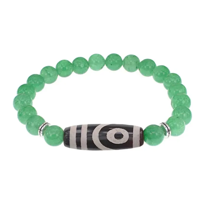 Стрейч-браслет из натурального нефрита с тибетской бусиной Дзи из агата.