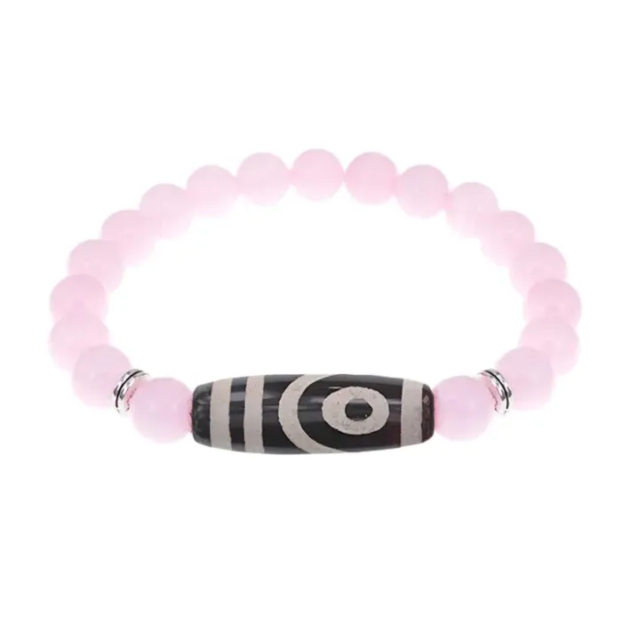 Браслет с 2-глазой бусиной Дзи и нат.камнем Розовый кварц BSDS8-26-15