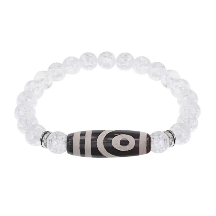Стрейч-браслет из синтетического сахарного кварца и тибетской бусины Дзи из натурального агата с двухглазым узором.