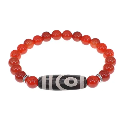 Стрейч-браслет из натурального камня сердолика с тибетской бусиной Дзи из агата.