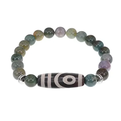 Стрейч-браслет из натурального камня с тибетской бусиной Дзи.
