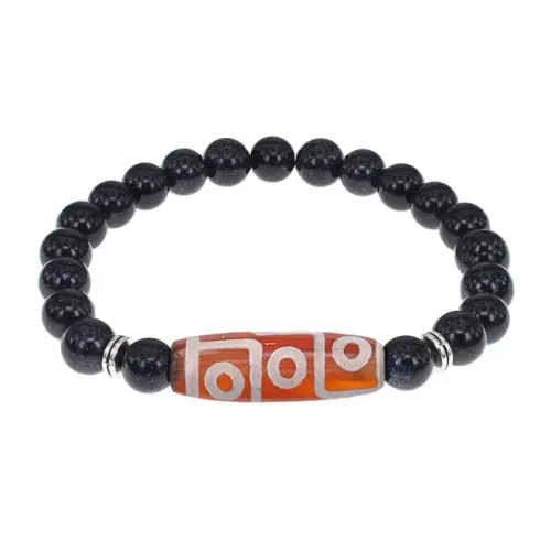 Браслет с 9-глазой бусиной Дзи и синт.камнем Синий авантюрин BSDS8-27-02