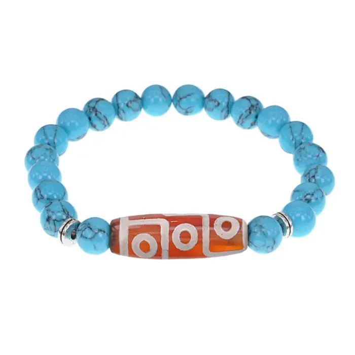 Браслет с 9-глазой бусиной Дзи и синт.камнем Бирюза BSDS8-27-05