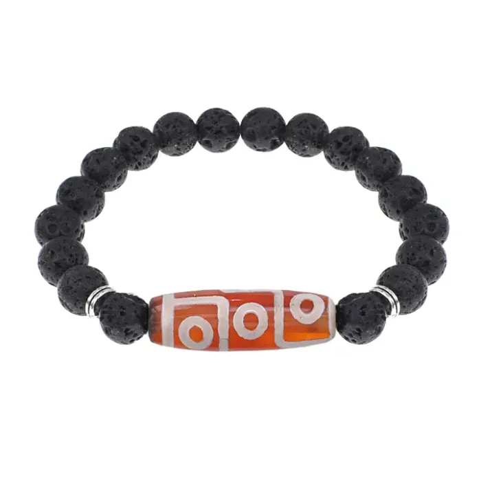 Браслет с 9-глазой бусиной Дзи и нат.камнем Лава BSDS8-27-09