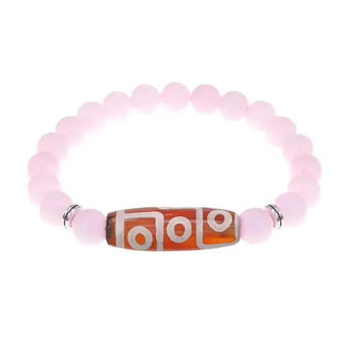 Браслет с 9-глазой бусиной Дзи и нат. камнем Розовый кварц BSDS8-27-15