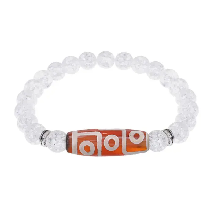 Стрейч-браслет из синтетического камня с тибетской бусиной Дзи из натурального агата.