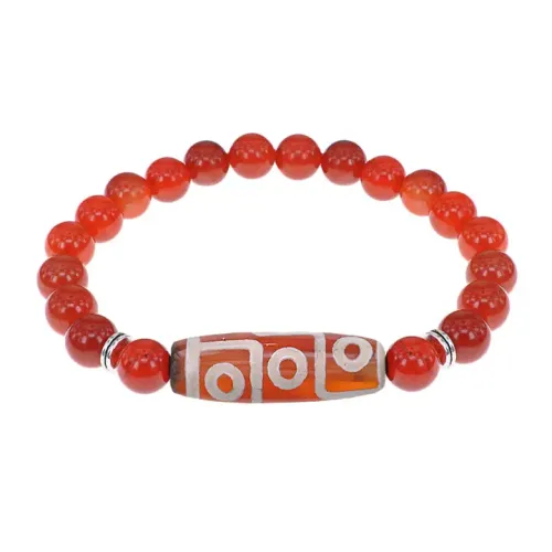 Стрейч-браслет из натурального сердолика с тибетской бусиной Дзи из агата.