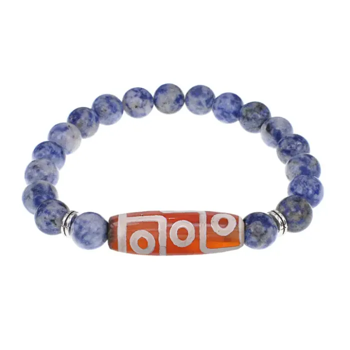 Стрейч-браслет из натурального камня с тибетской бусиной Дзи из агата.