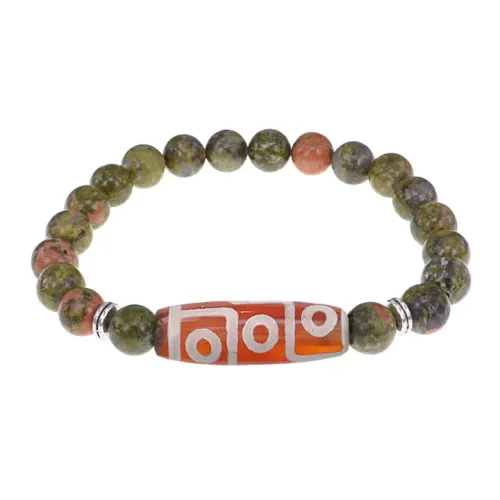 Браслет с 9-глазой бусиной Дзи и нат.камнем Унакит BSDS8-27-20
