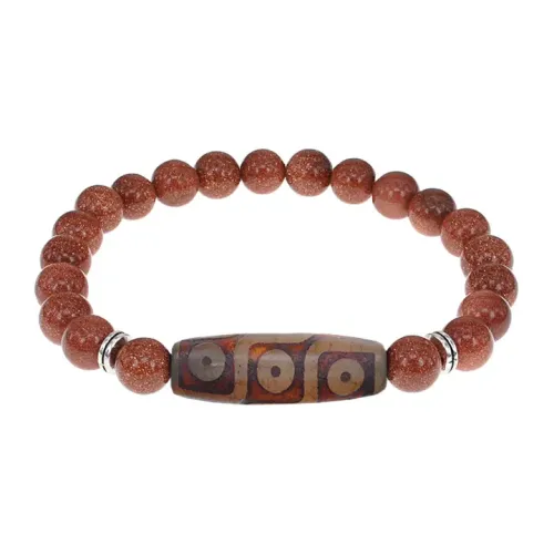 Браслет с 9-глазой бусиной Дзи и синт.камнем Коричневый авантюрин BSDS8-28-01