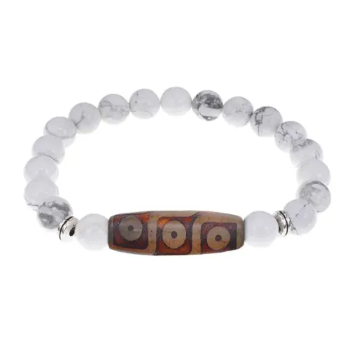 Стрейч-браслет из натурального камня кахолонг с тибетской бусиной Дзи из агата.
