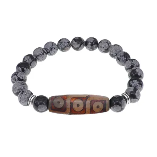 Браслет с 9-глазой бусиной Дзи и нат.камнем Снежный обсидиан BSDS8-28-14