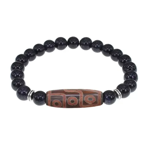Стрейч-браслет для ношения, состоящий из синтетического камня синий авантюрин и тибетской бусины Дзи из натурального агата с девятиглазым узором.