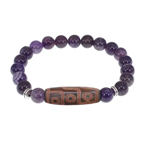 Браслет с 9-глазой бусиной Дзи и нат.камнем Аметист BSDS8-29-03