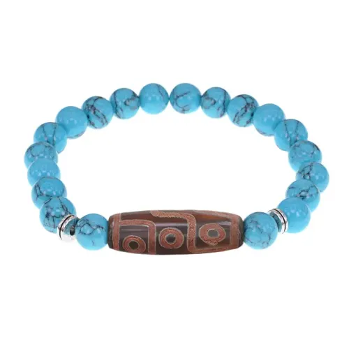 Браслет с 9-глазой бусиной Дзи и синт.камнем Бирюза BSDS8-29-05