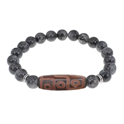 Браслет с 9-глазой бусиной Дзи и нат.камнем Лабрадор BSDS8-29-08