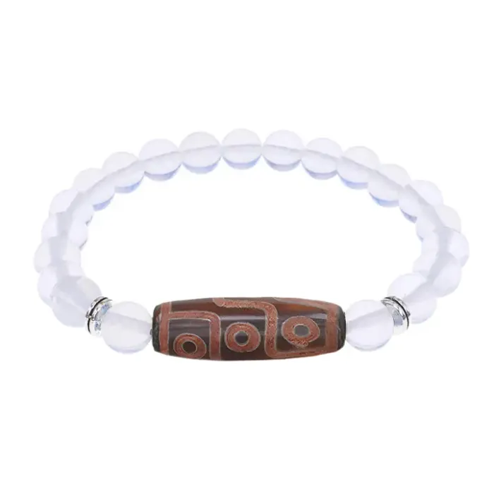 Стрейч-браслет из синтетического камня с тибетской бусиной Дзи из натурального агата.
