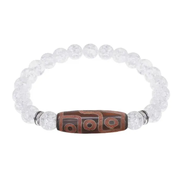 Стрейч-браслет из синтетического камня с тибетской бусиной Дзи из натурального агата.