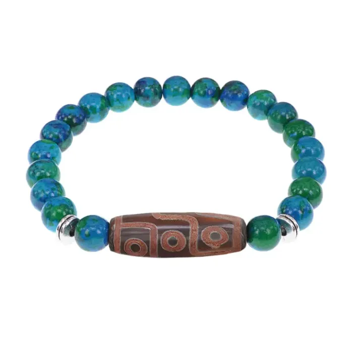 Браслет с 9-глазой бусиной Дзи и синт.камнем Хризоколла BSDS8-29-21