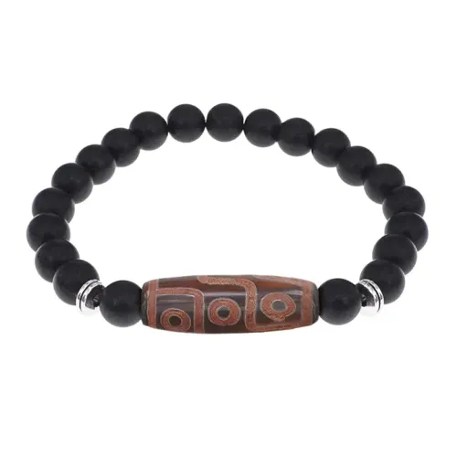 Браслет с 9-глазой бусиной Дзи и синт.камнем Шунгит BSDS8-29-24