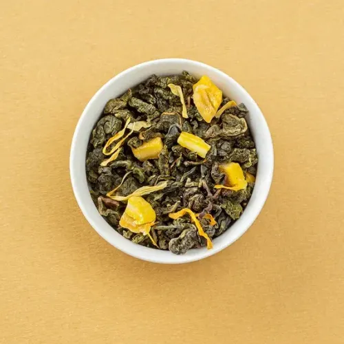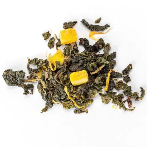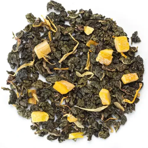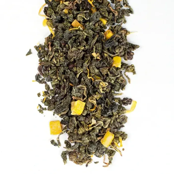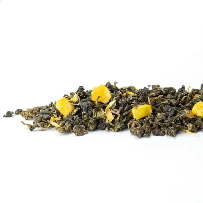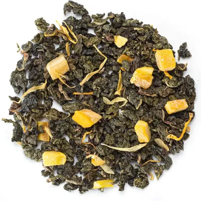 Состав: китайский улун, кусочки манго, лепестки календулы, аромат манго
