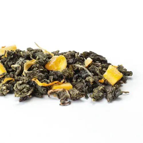 Этот ароматизированный улун с кусочками манго и лепестками календулы создаёт атмосферу тропической свежести. Мягкий вкус чая гармонично дополнен яркими, сочными нотами спелого манго.