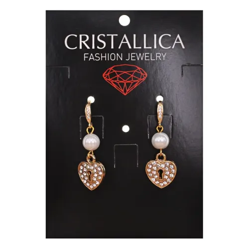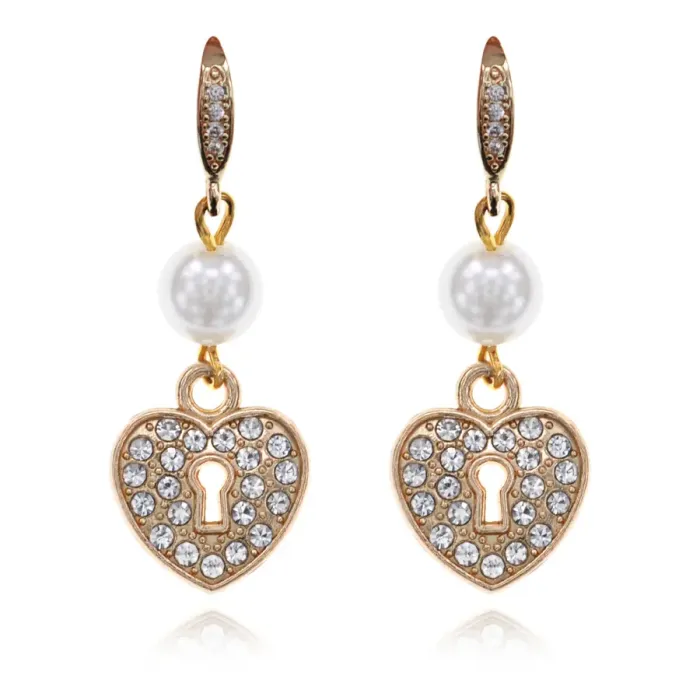 Серьги с подвеской в виде сердца-замка из искусственного жемчуга.