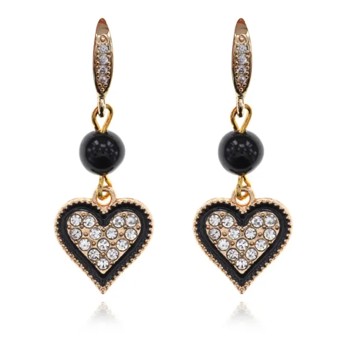 Серьги-амулеты с подвеской в форме сердца из натурального камня черный агат.