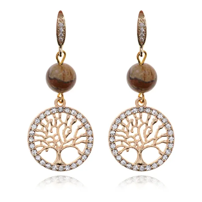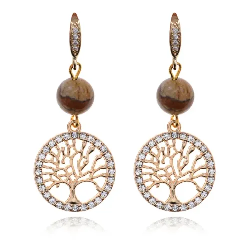Серьги с подвеской в форме Дерева жизни из натурального камня песочная яшма и бижутерного сплава.