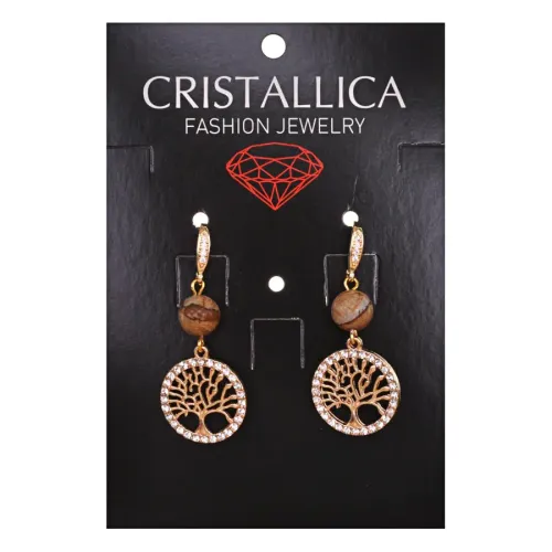 Серьги с подвеской Дерево жизни, нат.камень Песочная Яшма 8мм SEC-09-08